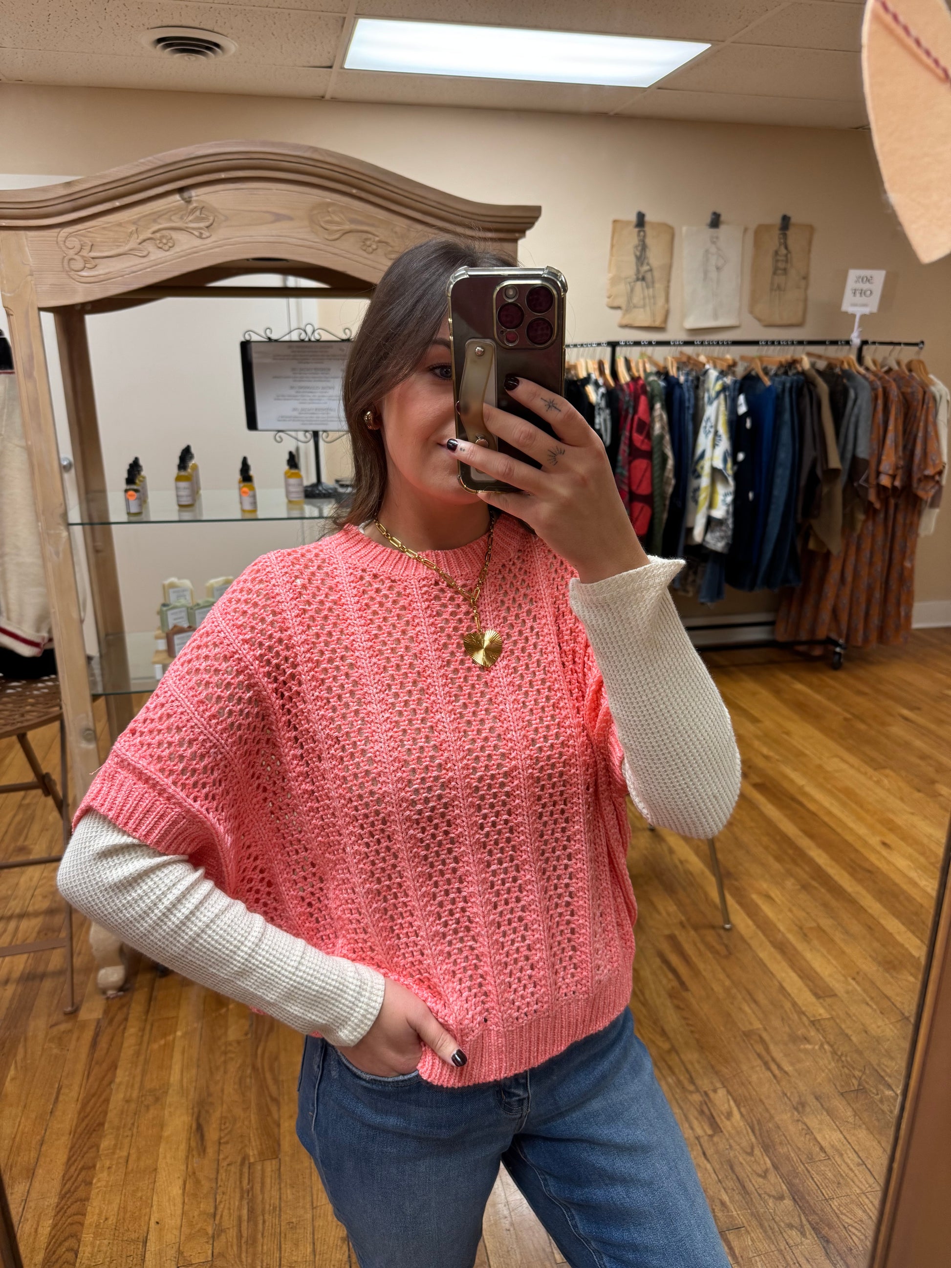 This bright coral sweater is the perfect addition to your spring wardrobe!