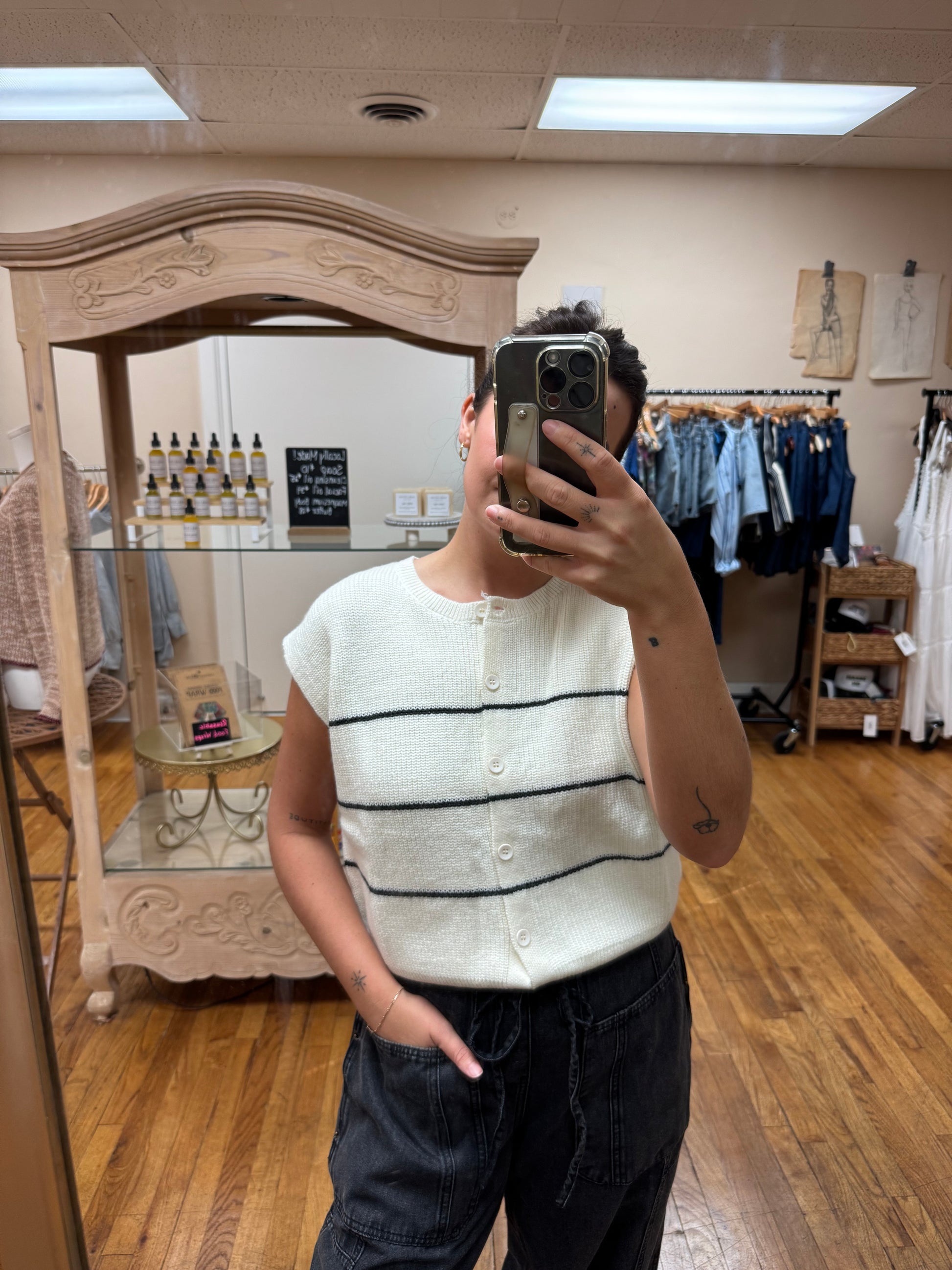 Cream Striped Sweater Vest