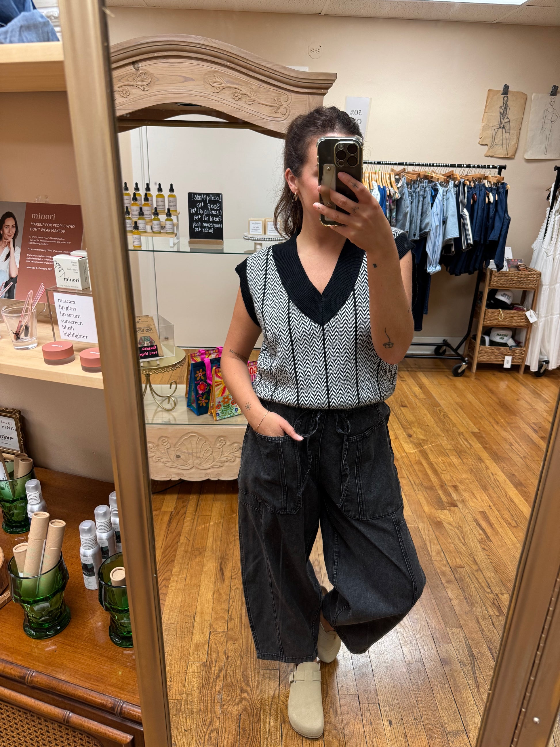 The Iggy Chevron Sweater Vest has a retro vibe and cozy feel. True to size.