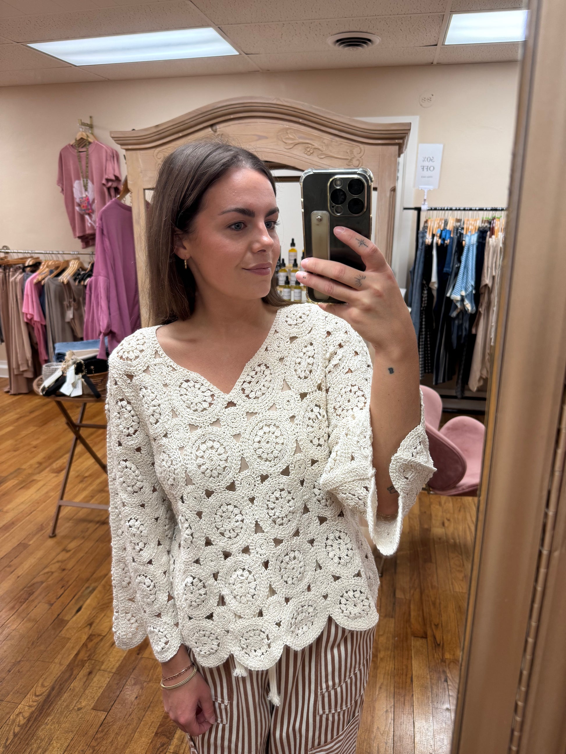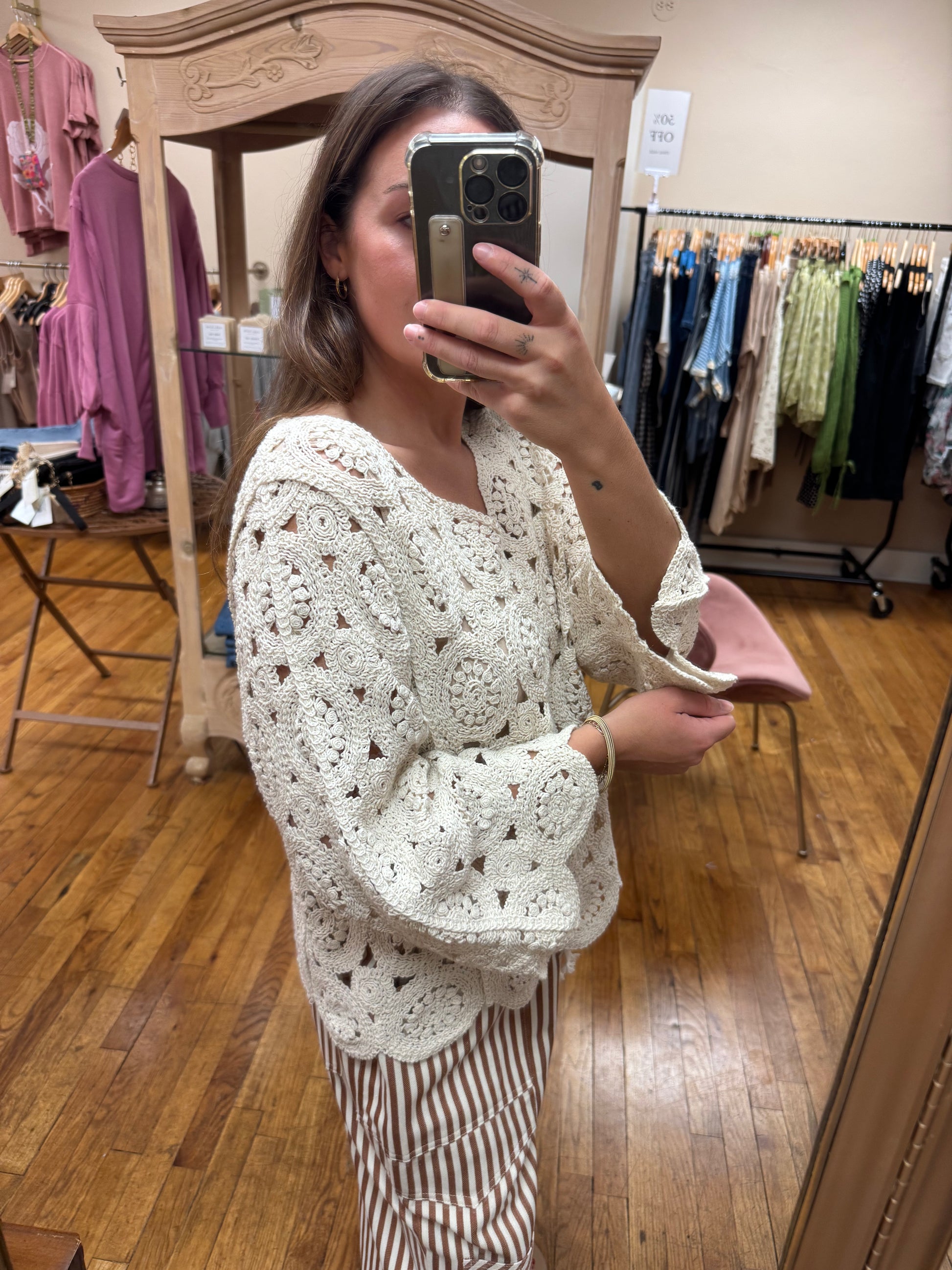The boho Laura Crochet Sweater in a versatile cream shade will be your go to top for early fall! It’s lightweight and can be paired with so many different bottoms.