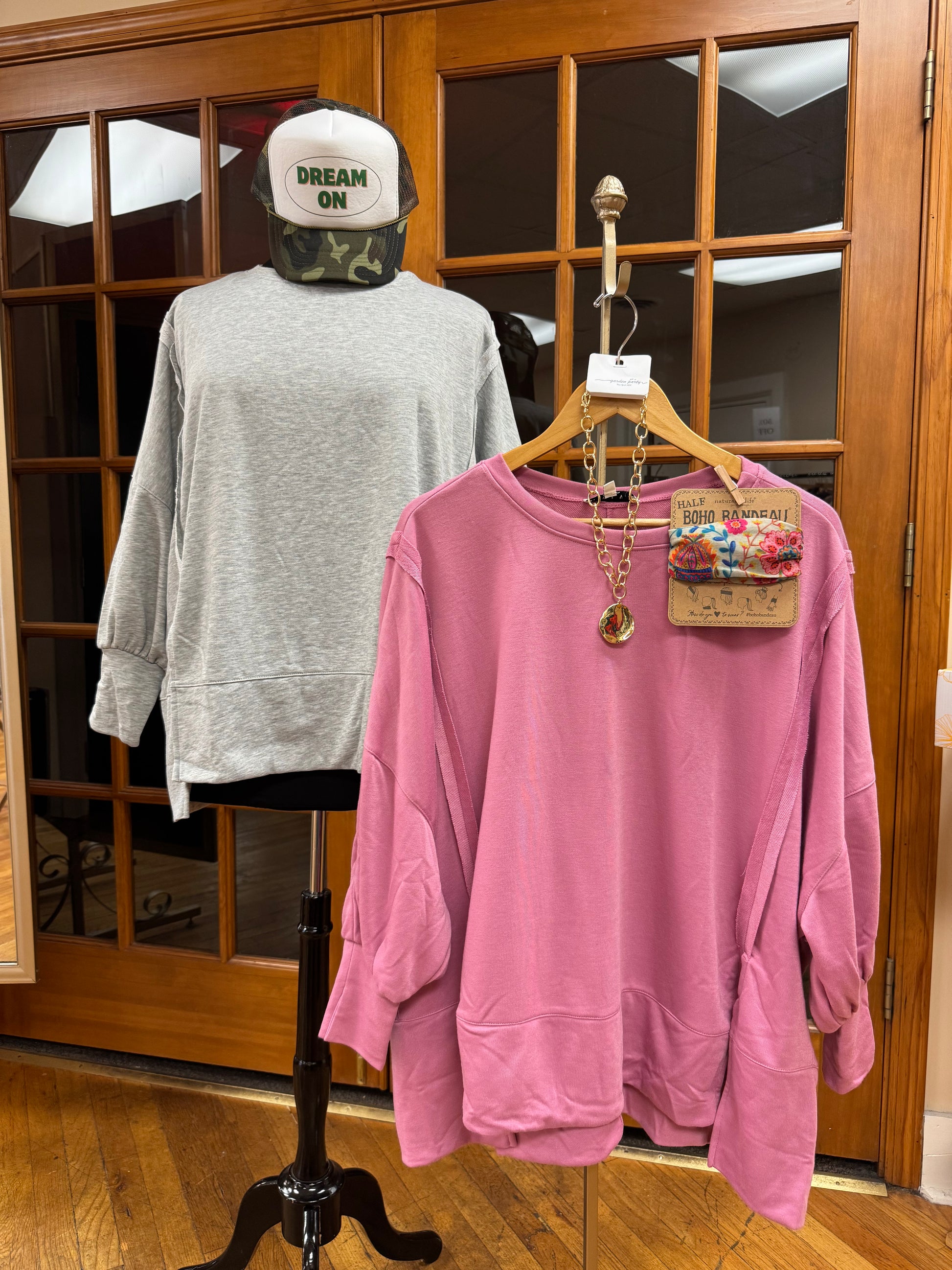 Whether you choose classic grey or pink berry, you can’t go wrong with a perfectly oversized crew neck!